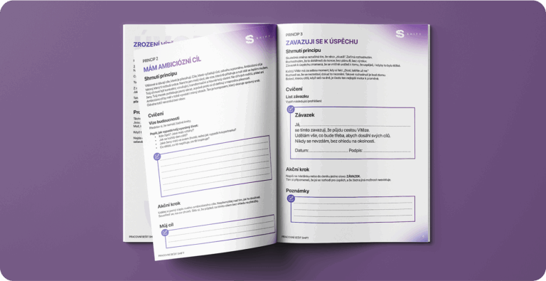 Získáš pracovní sešit k vytisknutí. Vyplňováním úkolů a cvičení získáš jasno v tom, co máš dělat krok za krokem, a budeš mít perfektní přehled o svém progresu.